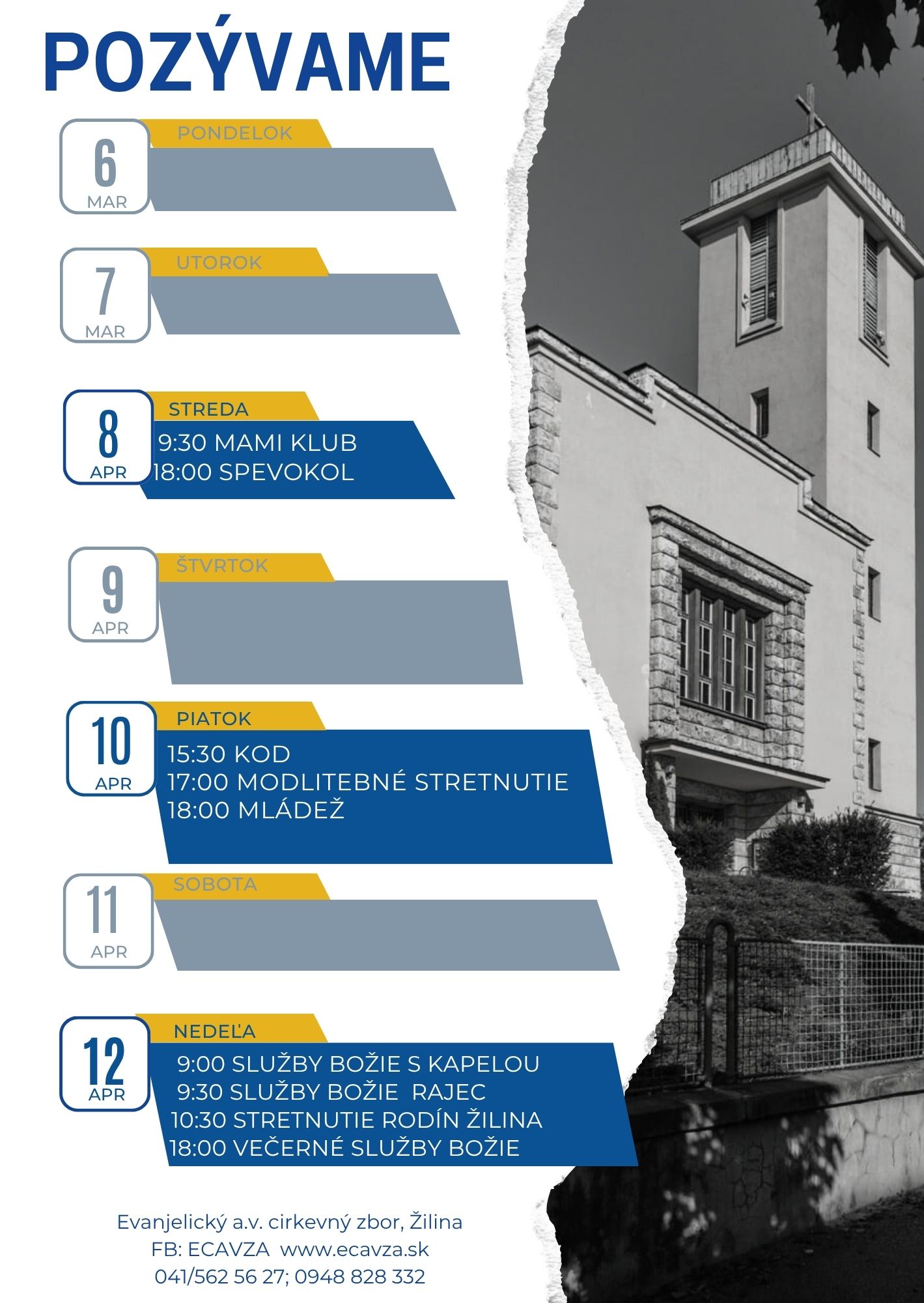 13.-19.4.2026, Prehľad týždňa Jan Hlas 18. apríla 2026 17. apríla 2026 View Full Event Details18. April 2026 - 0:00Prehľad týždňa 13.-19.4.2026 stiahnuť tu.